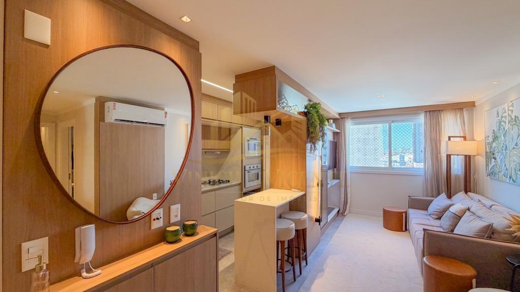 Imóvel com dois dormitórios, sendo uma suíte, vaga dupla de garagem, churrasqueira e totalmente mobiliado e equipado. Acabamentos de alto padrão, finamente decorado e pronto para uso imediato, ideal tanto para moradia quanto para investimento. Excelente opção para quem busca conforto, praticidade e localização privilegiada no centro da cidade.