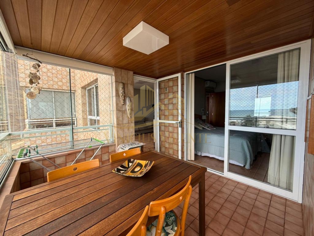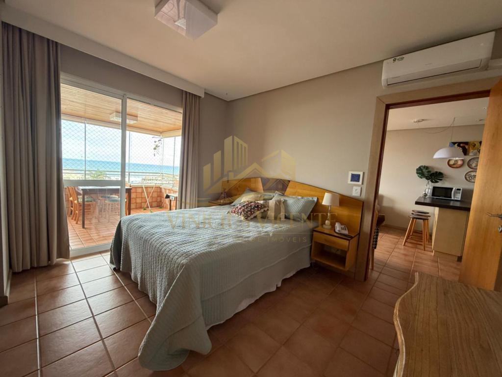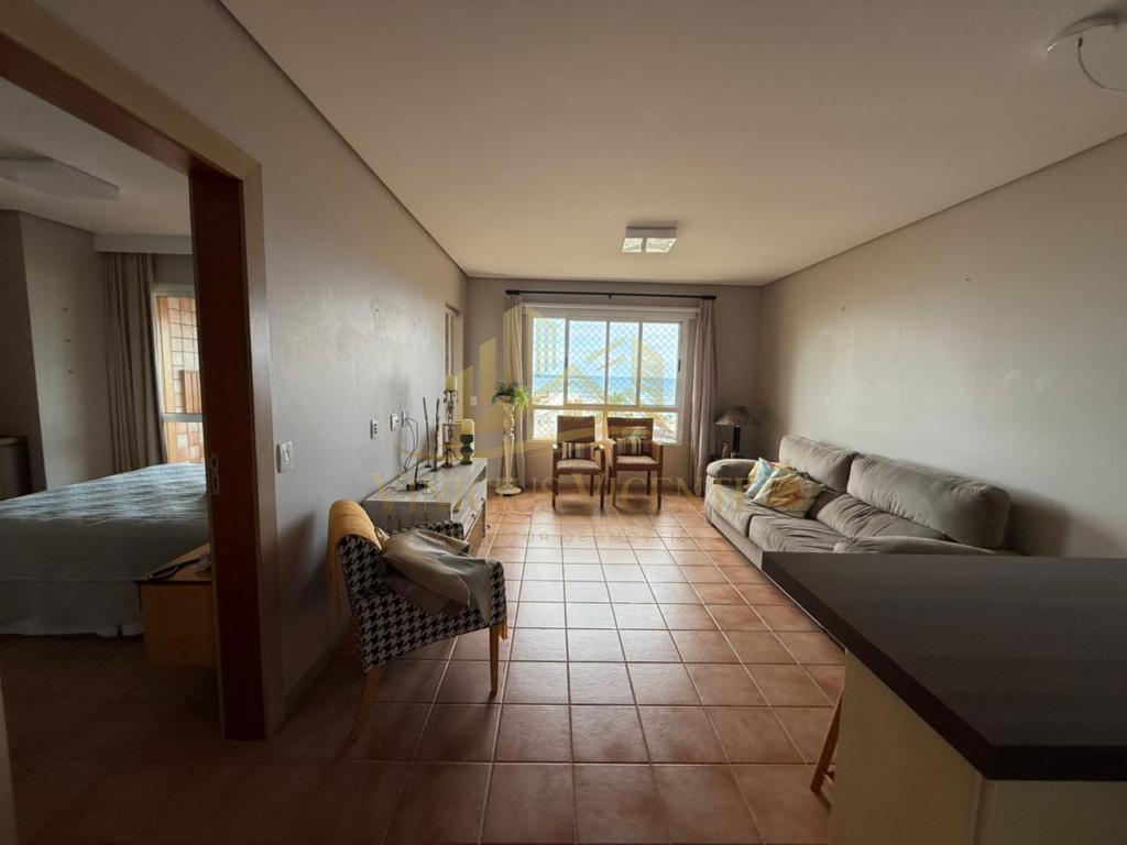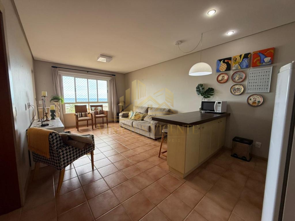 Tem 01 dormitório, lavabo, cozinha, mobiliado, varanda com vista única e permanente para o mar e uma vaga de garagem!